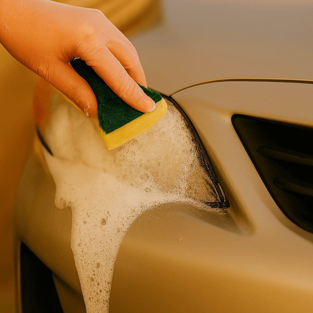 Use the sponge to gently rub the headlight in circular motions. Light pressure is enough to remove haze and yellowing.